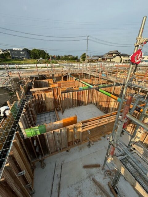 23日に基礎コンクリート打設を迎えます。連日暑い日が続いていますが何とか工程通り施工できました。